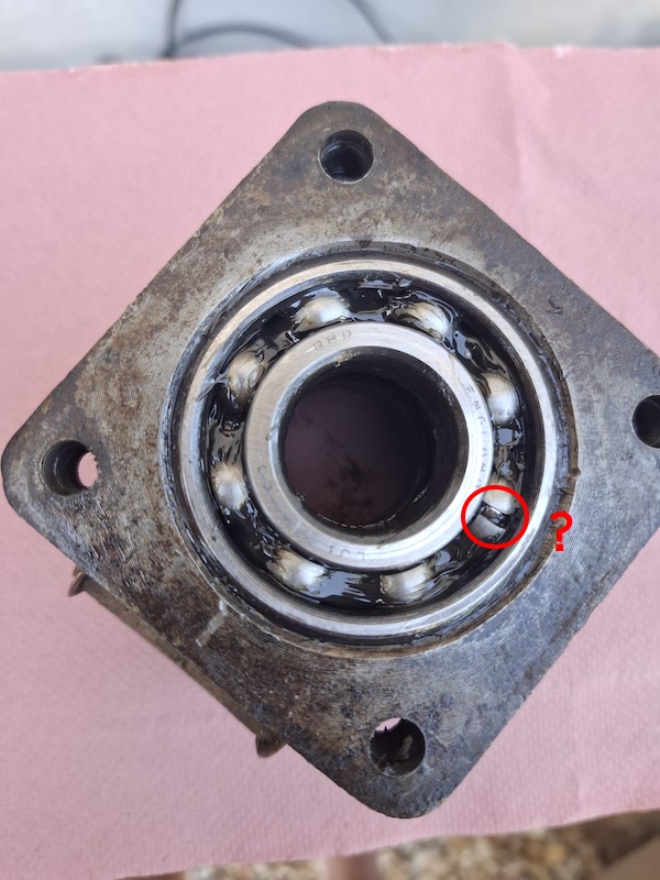 | Bonjour à tous, Étienne, L'opération d'extraction du carter porte-roulements hors de l'arbre impose un stress important au roulement à billes (contraintes sur la cage à billes centrale), et en principe ces conditions ne permettent pas de réutiliser le roulement. De plus sur ta photo il semblerait que la cage à billes soit fracturée ? cdlt ;) |