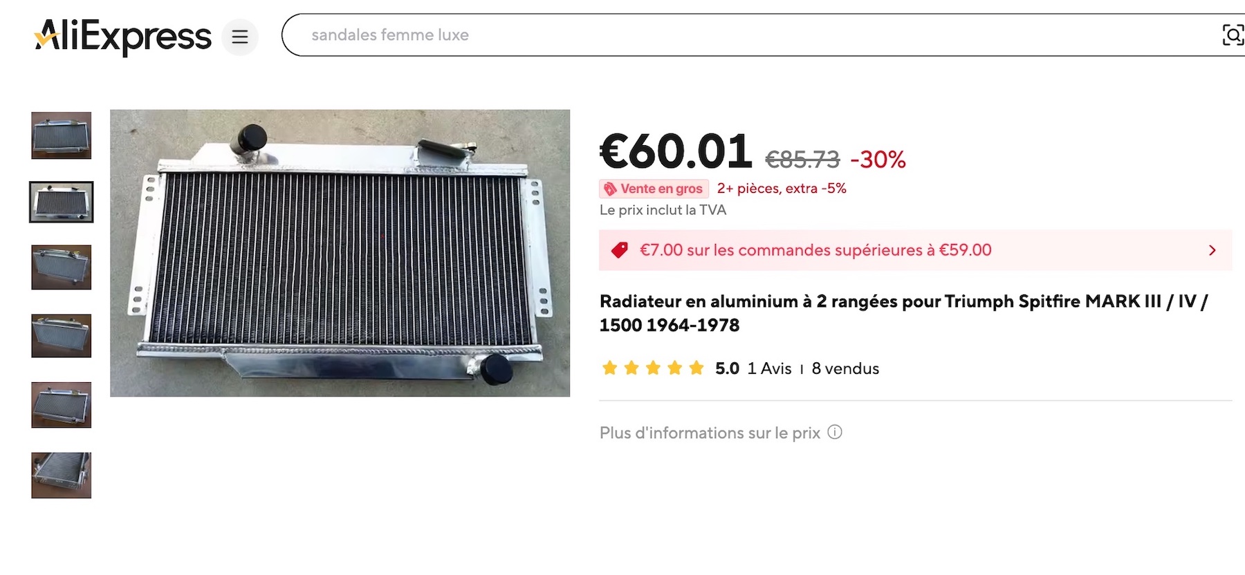 J'ai acheté le miens sur EBay mais certainement de la même provenance, pour 125 euros transport inclus , ça fonctionne bien par contre il faut trouver et adapter la durite du haut et bas . Celà fait 2 ans que je roule comme ça.