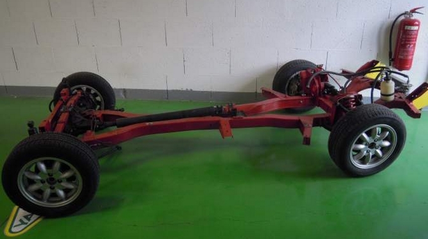 En attendant de trouver une hypothétique solution sur l’endroit où travailler sur ce projet, je cumulais par-ci par là des pièces venant compléter mon puzzle, c’est ainsi que j’ai acquis un châssis roulant, avec direction, trains avant et arrière hormis le moteur et la BV (! j’avais déjà ces deux éléments) le châssis roulant était complet et surtout avec des éléments restaurés n’ayant jamais pris la route dont 4 jantes neuves Minator 6 pouces (idem Minilite) et pneus neufs en 185. Les mois et années ont passés et j’ai terminé la restauration de ma ‘première’ GT6 en 2022.