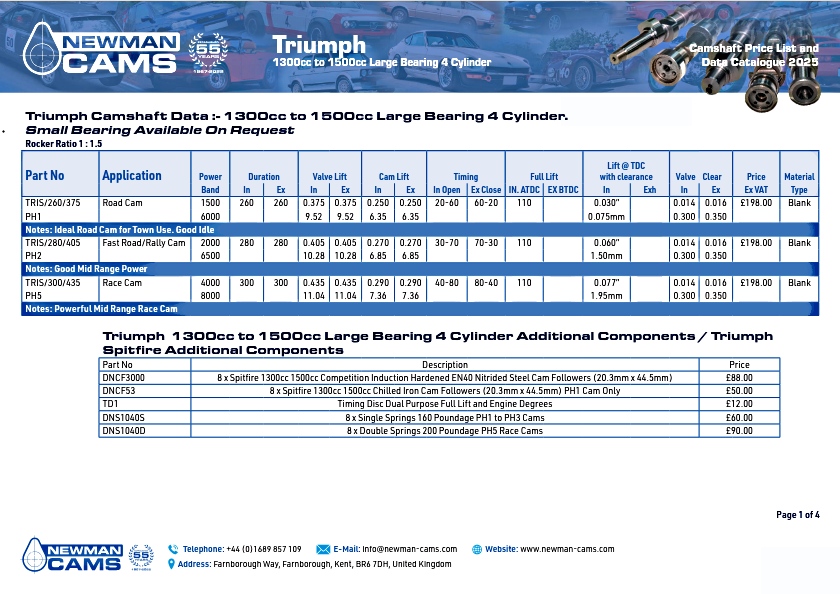 Soit le profil d'origine RKC3305 (diagramme 18-58-58-18, levée de came 0,240") ou leur profil maison phase 1 (PH1) proche