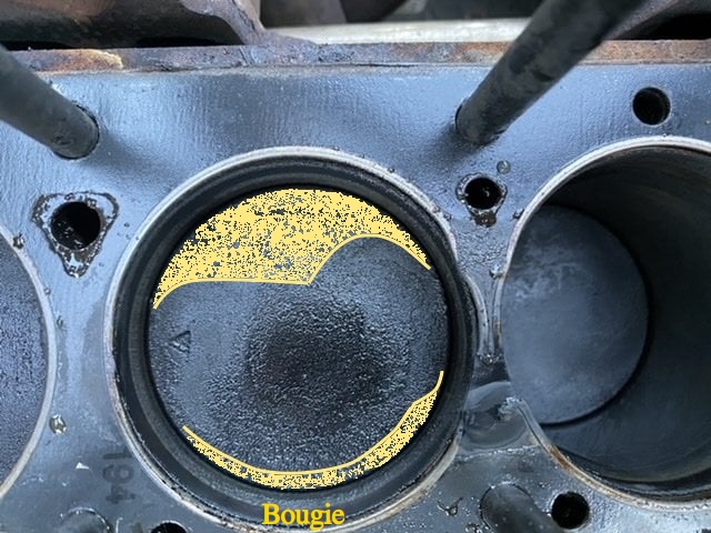 As-tu inspecté les calottes des 2 pistons centraux à travers le trou de bougie?