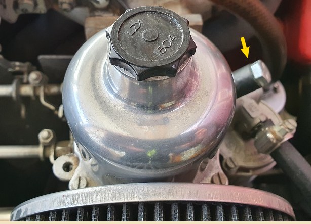 Tu retires le restricteur plastique en "B" sur la photo et tu emmanches un bout de durite serrant autour du piquage metal sortant du carbu puis tu emmanches simplement en force une vis au centre de la durite comme sur la photo jointe.