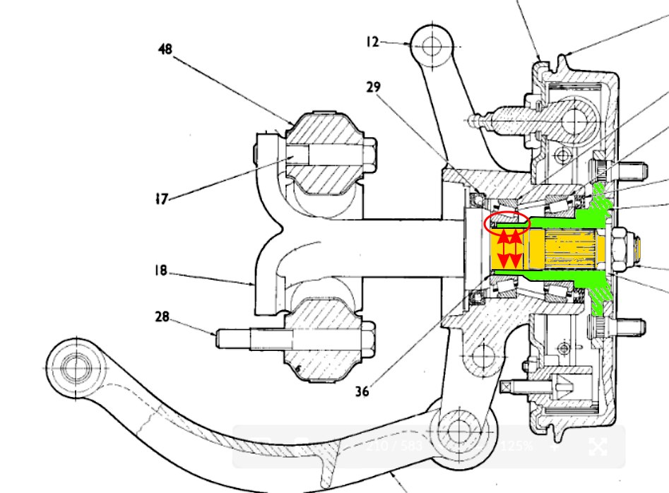 C'est le point faible de ces moyeux: l'épaisseur de la portée de la cage intérieure du roulement est limitée et toute rigidité & maintien du roulement en place sont assurés via l'interférence et le support de la portion cylindrique apportés par l'arbre d'origine.