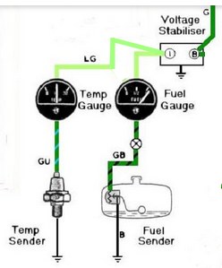 | Bonjour, Si tu mets du 12V sur les fils qui vont aux cadrans (voir schémas Tommy) l'aiguille de temp ne bougera pas car moteur froid, l'aiguille jauge mettra longtemps à bouger si peu d'essence, attendre au moins 15 secondes. Ce sont des bilames, il faut qu'ils chauffent un peu. Jean |