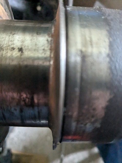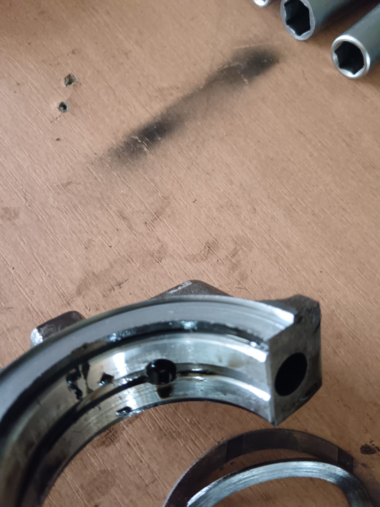 Ceci veut dire également que l'épaulement du vilebrequin est venu frictionner (usiner) sérieusement l 'épaulement interne du logement de la 1/2 lune usiné dans le bloc et le chapeau de 5mm - 2.5 mm épaisseur de la 1/2 lune = 2.5 mm de limaille d'acier !!