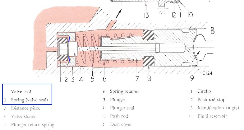 Pour moi il y a un souci avec le clapet anti-retour: (le système incluant la tige+coupelle tampon+rondelle ressort+logement plastique jaune). Soit cette partie n'est pas correctement assemblée (par ex. coupelle tampon montée à l'envers) ou bien la portée au fond du maître-cyl. n'est pas nickel (présence de dépots ou surface abîmée).
