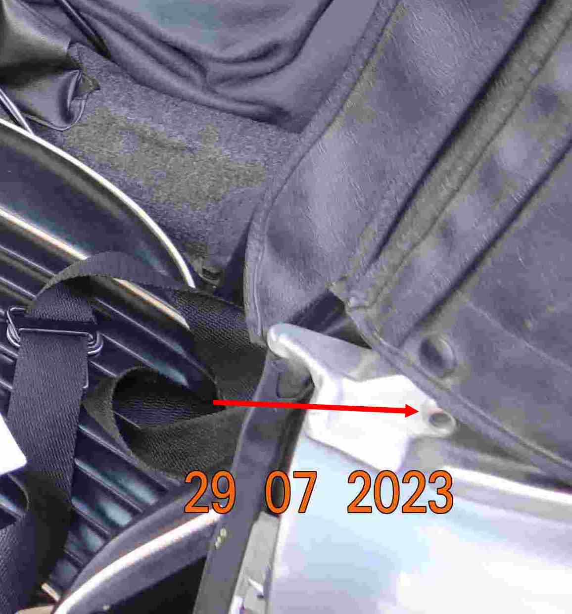 Oui il y a bien une vis tête fraisee chromée, les mêmes qui fixent les panneaux au-dessus des passages d'ailes.