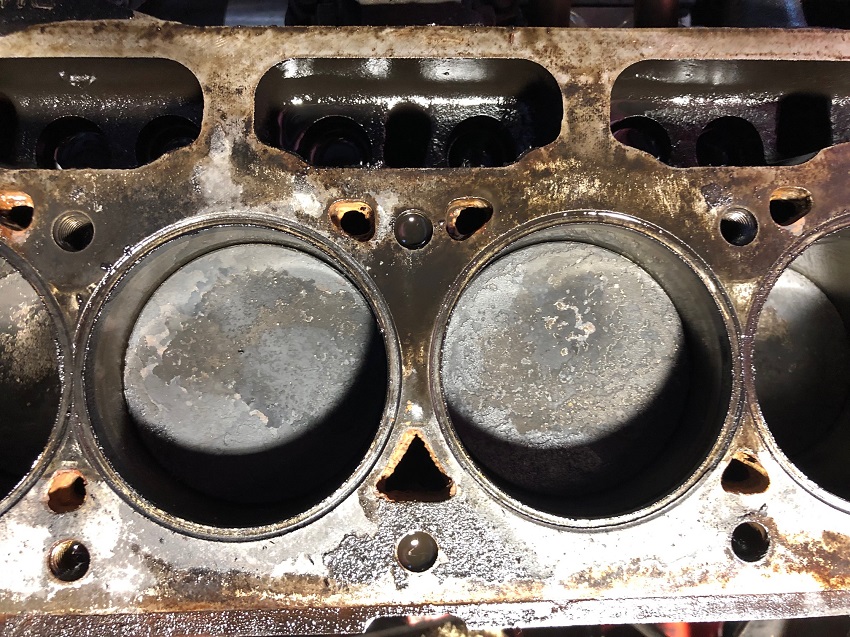 Je suis en cours de changement de joint de culasse. Moteur laissé en place sur chassis, culasse enfin démontée (aprés une grande quantité de WD40 pendant 10 jours sur les goujons qui ne voulaient pas se libérer...).