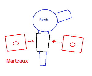 je n'ai pas été assez clair ci-dessus : sur la spit ce n'est pas évident de part la position de la rotule, mais si on est adroit le mieux est de taper en même temps de chaque coté du cône où vient se loger la rotule pas sur la rotule évidement