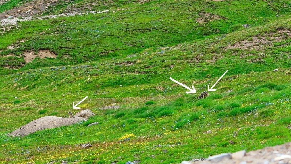 | Nos chères marmottes : il y en a même une qui escalade le fort | |