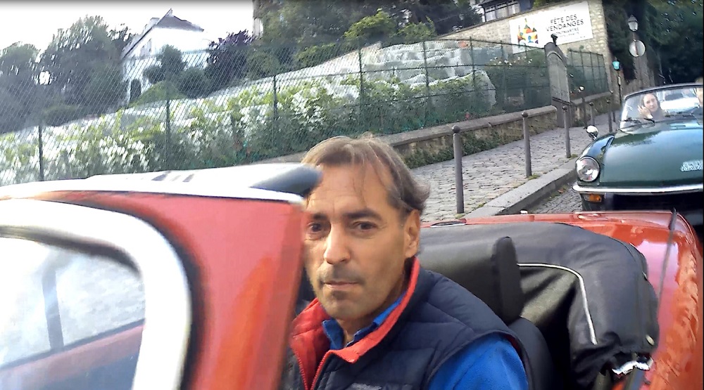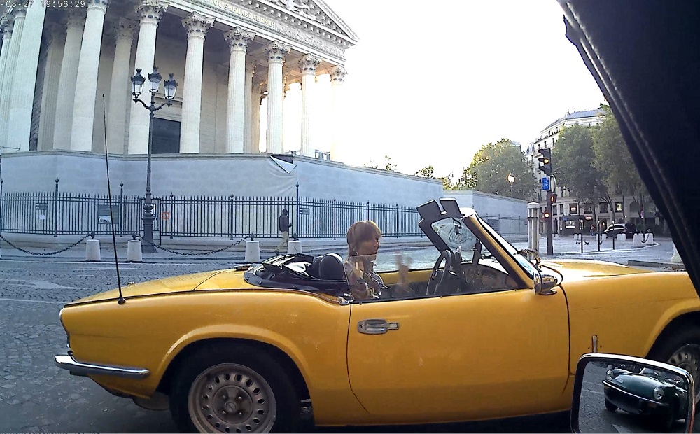 La Madeleine avec Hugo dans le retro sans plaque d'immatriculation
