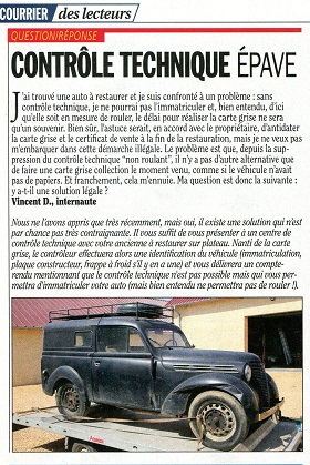 Pour la même raison, un véhicule doit être en état de se présenter au contrôle technique pour pouvoir demander une attestation FFVE en vue d’obtenir un CI Collection.