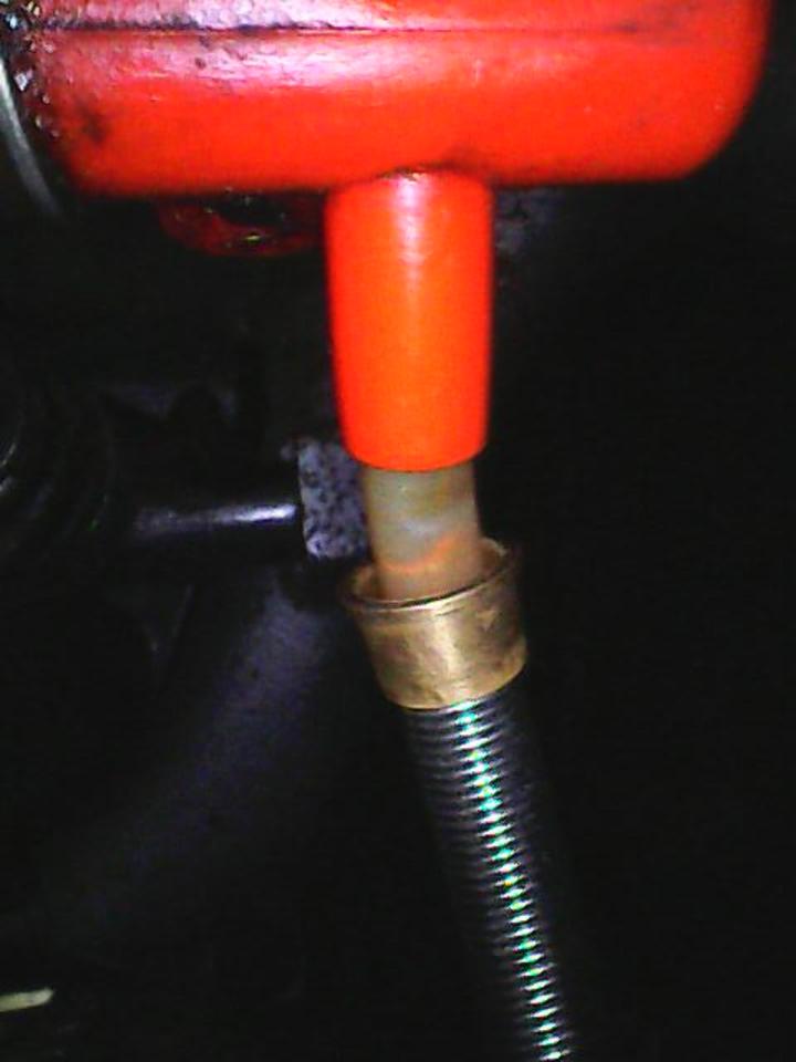 Ensuite rétracter la gaine-ressort de protection du tuyau pour pouvoir faire dépasser ce dernier d'env 6mm par rapport au nouveau joint.