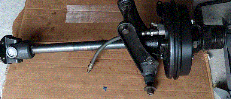 Et voilà le train arrière restauré : croisillon, arbre de roue, palier de transmission et suspension, moyeu de roue remplacés