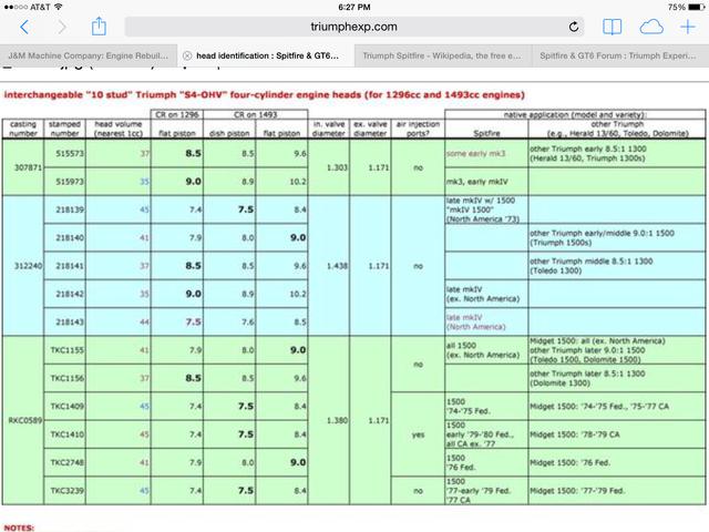| Bonjour Fred, Oui ils sont creux sur modèles USA, sauf pour 1976. Oui déjà le faible taux de compression ne favorise pas les performances, et si tu ajoutes le pb de richesse, effectivement ça n'aide pas. Tu peux toujours restaurer la compression pratiquement au niveau du std Europe en installant une culasse de Spit 1300 MK3 ou 4 (de pref MK4 "phase2" 218142) avec les tiges culbus "courtes" correspondantes. (tableau ci-dessus fourni par Franc). À accompagner par un remplacement d'allumeur pour une version 1500 Europe avec un calage statique en conséquence (10°). cdlt ;) |