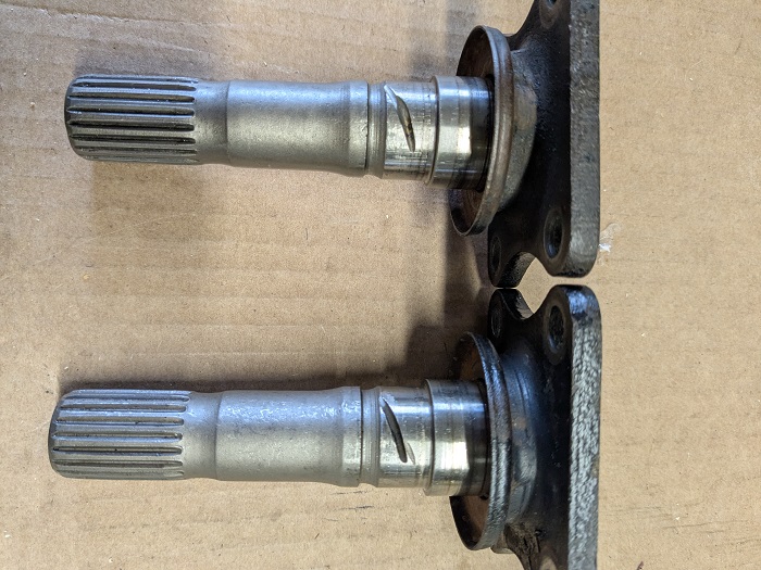 | Bonjour Charly, Concernant l'arbre de sortie, ceux des Vitesse 6 (motorisation 1600) étaient (sont!) particulièrement sensibles à la rupture en raison du couple supérieur du 6cyl et du poids de l'auto; donc il y a eu des modifs en cours de production de ces ponts afin de renforcer les arbres (diamètre et procédé d'usinage des cannelures). Les arbres renforcés sont apparus sur les dernières Spit MK3 et sur les Herald 1300 et le montage a été généralisé sur tous les nouveaux modèles (Vitesse 2L /GT6/Spit MK4/1500). Donc ici sur un pont FR de 1500 on est en présence d'arbres renforcés. Quelques hypothèses concernant la rupture, pouvant être liées ou pas : - Un pilote surnommé "godasse de plomb" - Présence d'une crique dans le métal + fatigue - Interversion des 2 arbres lors d'un précédent démontage entraînant une inversion des contraintes subies = stress + cdlt :) |