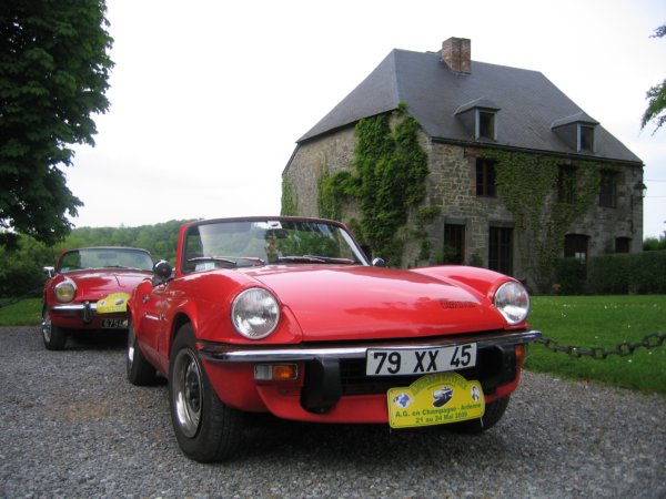 | Oui, VRAIMENT MERCI, MERCI, MERCI Aux organisateurs et leurs épouses qui ont ½uvrées pour la participation de cette AG. - Merci, pour l'accueil, les petits chocolats, le poème d'Arthur Rimbaud - Merci, aux voitures pilotes qui ont veillés à ce qu'aucun chasseur anglais ne se perde dans la campagne Ardennaise, expression reprise à notre ami René VAUTRIN - Un grand bravo aux acteurs de la SPIT'AC qui nous ont ravis aux larmes - Merci pour ceux qui s'occupent aujourd'hui de tout remettre en ordre au Domaine de la Motte Pour notre deuxième participation nous ne pouvons que confirmer la joie que cela été d'avoir été présents, des liens se sont confirmés d'autres se sont révélés, bravo pour les nouveaux Alex-Rez & Waterspit qui ont vaincu leurs appréhensions sur la fiabilité de leurs voitures, nous en avons quelques souvenirs… Merci à Nina et à Jacques pour les premières photos. Une petite pensée pour Philippe PETER qui nous l'espérons à réussi à réparer son carter d'huile endommagé. Au plaisir de rencontrer certains d'entre vous le 05 juillet chez Francis à VERDUN, pour les autres à l'année prochaine. Amitiés, Martine & Paul-André |