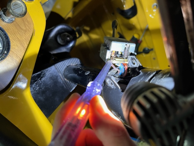 ![]() ![]() ![]() ![]() ![]() ![]() Ça y est, tout mon faisceau est fonctionnel sur la mk3 (vu mon niveau en élec, ce n'était pas gagné !), sauf... Les phares ! J'ai rebranché selon les photos prises avant démontage (photo 1). Cette voiture ayant été abandonnée en cours de chantier, il y a environ 20-25 ans, je n'exclus pas que c'était mal branché. Mais je ne trouve des docs et photos qu'avec des interrupteurs à 3 broches, pas avec celui dont je dispose. Alors, en branchant comme avant, j'obtiens : - premier cran: lumière aux veilleuses (fil rouge) + codes (fil rouge/bleu) + tableau de bord (rien aux plein phares) - 2e cran: lumières aux veilleuses + codes mais PAS de tableau de bord. Rien aux plein phares (fil blanc/bleu), que le comodo soit horizontal ou en bas. Par contre en position plein phare, j'ai les codes qui sont alimentés. DiagnoSpit indique que le tableau de bord doit être alimenté lorsque l'interrupteur est bien au 2e cran. Le comodo horizontal donne les plein phares, et en bas, les codes. Je modifie le branchement comme suit: voir photo 2. (je décale plus bas la fiche alimentant le tableau de bord, rouge/blanc) Voici ce que j'obtiens: - 1er cran: veilleuses + codes, pas de tableau de bord, pas de plein phares - 2e cran: veilleuses + code + tableau de bord, pas de plein phares. Peu importe la position du comodo. Par contre, quand je mets le comodo horizontal, les codes ne sont plus alimentés. Mais toujours pas les plein phares. J'en viens à vous pour essayer de résoudre le souci ! Les résultats sont les mêmes lorsque je teste directement sur le comodo démonté, jamais d'alim à la broche du fil blanc/bleu des plein phares. Le comodo a l'air en parfait état, zéro corrosion dedans. Mon multimètre m'indique une bonne continuité entre l'arrivée de courant par le fil marron, et la broche bleu/blanc... C'est incompréhensible. Je précise que le courant arrive bien par le fil marron même quand je mets en position plein phares. Sauriez-vous m'indiquer si mes branchements à l'interrupteur sont corrects SVP ? Est-ce possible que ce problème soit lié au fait que je n'ai pas remonté les phares complètement ? D'avance merci, très bonne soirée à tous ! Julien |
