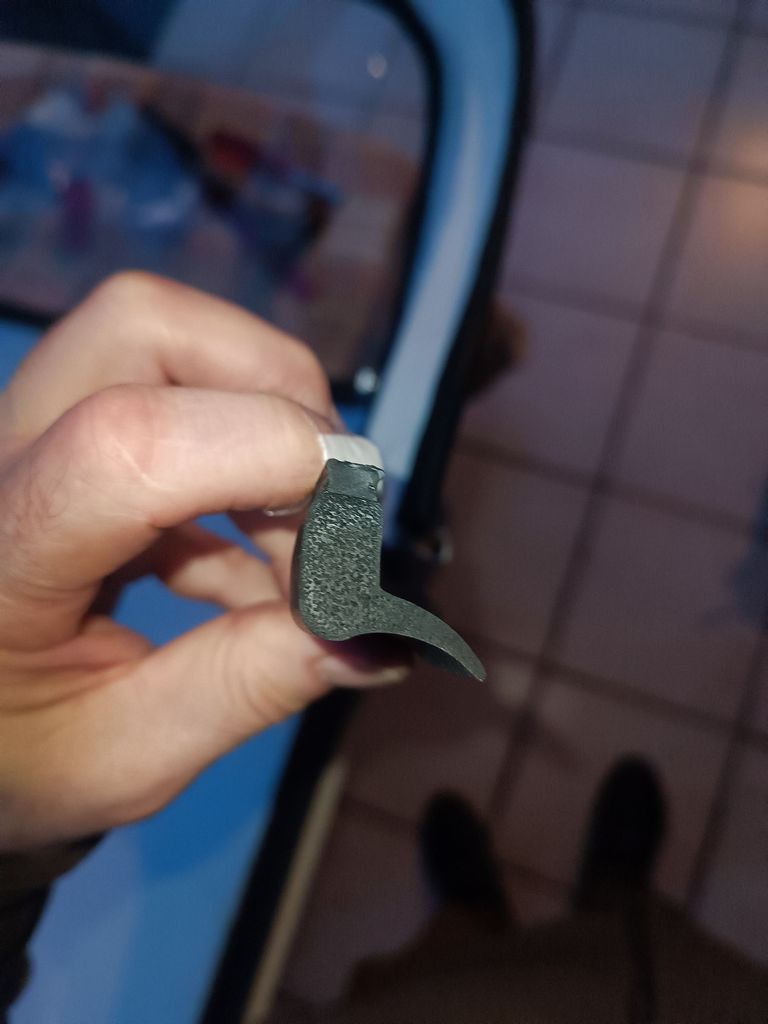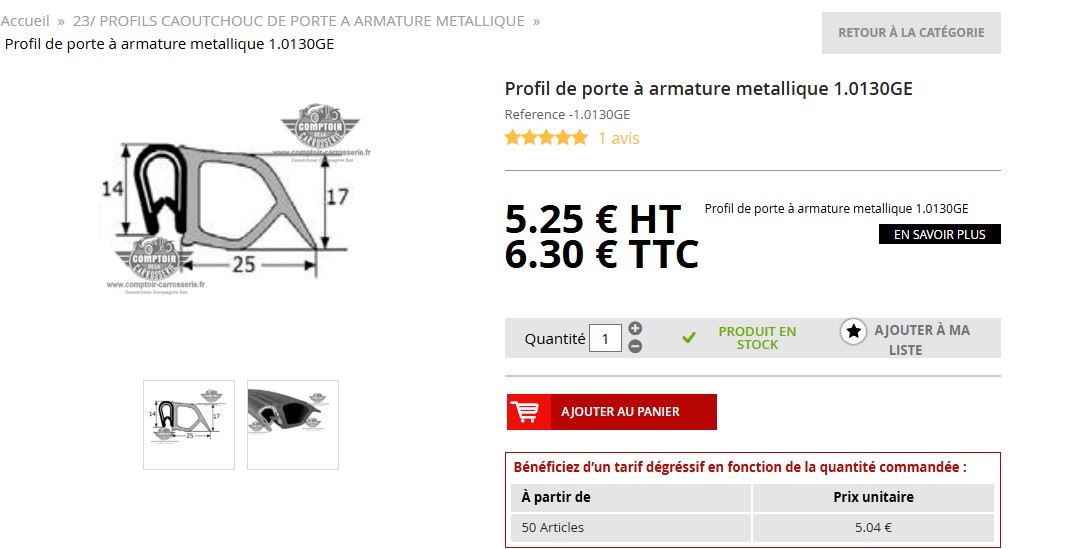 | J'avais acheté des joints, neufs, chez Canley classics, pour mettre dans les rainures pour coller aux vitres du hard-top. Et ils n'ont pas du tout le bon profil (voir photo). La lèvre devrait faire un angle aigu avec la partie qui s'emboîte dans la rainure, et ce n'est pas le cas. Je les ai enlevés et remplacés par un joint du comptoir de la carrosserie, qui correspond mieux au besoin (voir 2ème illustration). Méfiance, pour ceux qui voudraient les changer. |