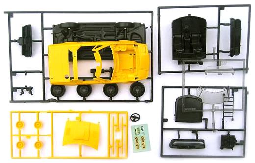 | Le modèle de la série télé et de l'illustration de la boîte est bien un coupé, mais le kit représente en fait un modèle targa, avec son toit amovible. |